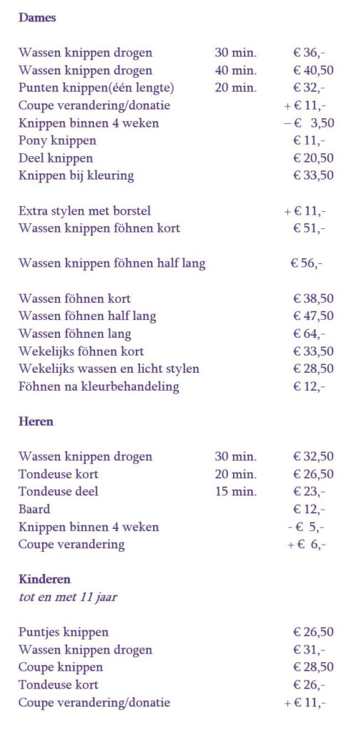 Bij annuleringen binnen 24 uur, wordt er 50% in rekening gebracht.